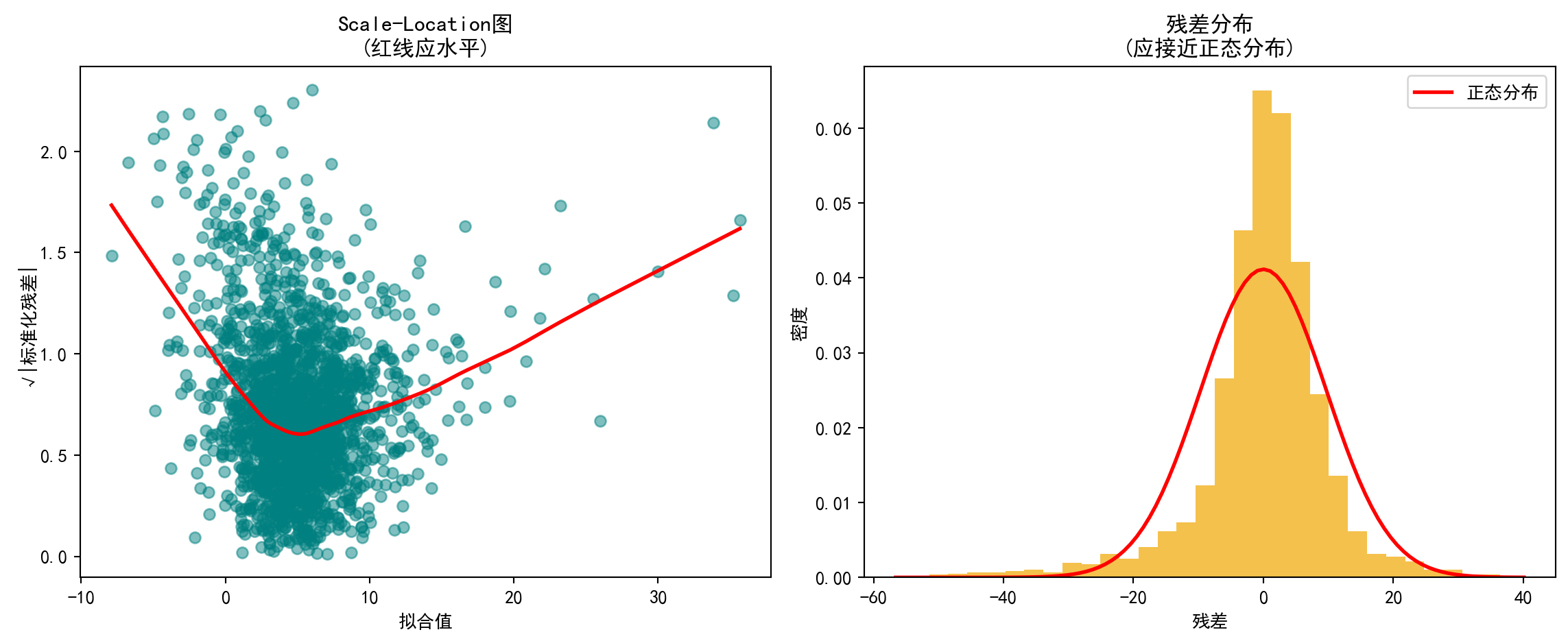 模型诊断:残差分析(残差vs拟合值图、Q-Q图、Scale-Location图)用于检验同方差性和正态性假设;VIF检验用于识别多重共线性问题。