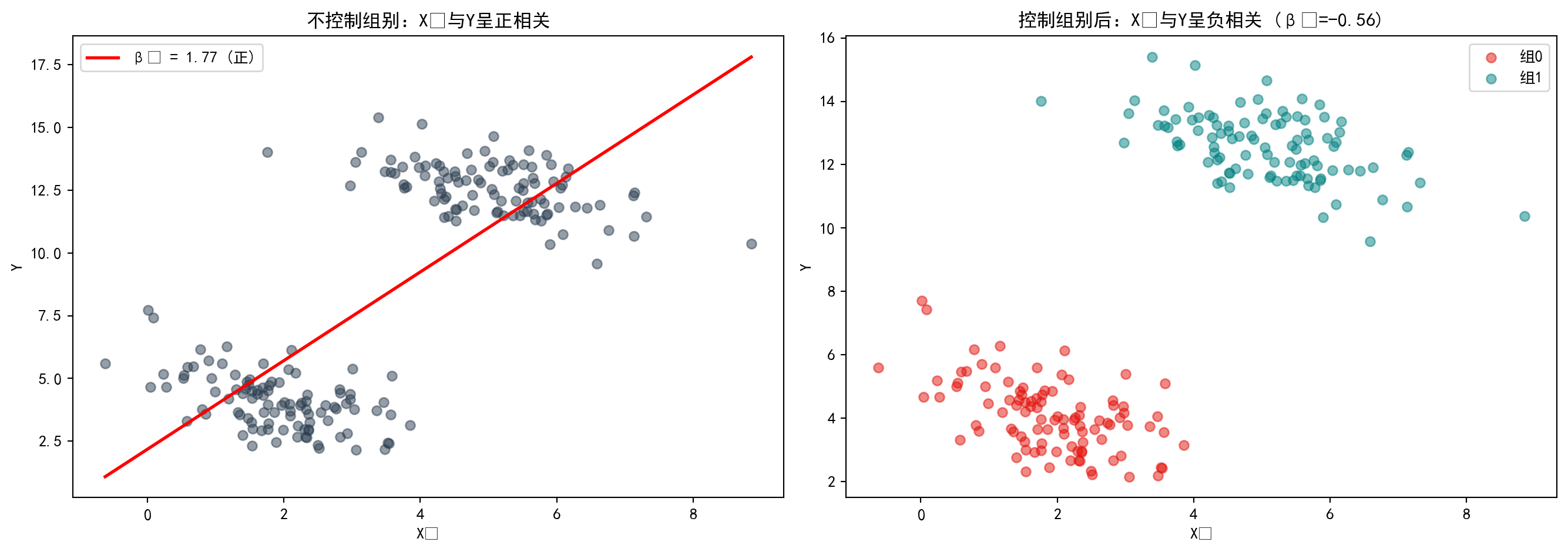 混杂变量是指同时影响自变量和因变量的第三方变量。如果不控制混杂变量,就会导致对自变量和因变量之间真实关系的错误估计——这种错误被称为遗漏变量偏误(Omitted Variable Bias, OVB)。