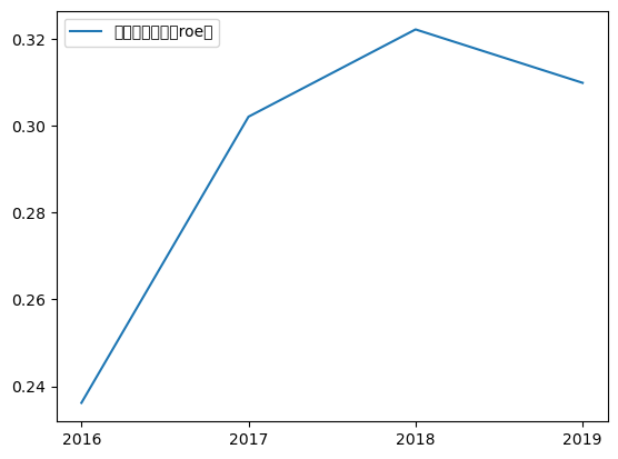 接下来,我们使用 Matplotlib 将 表 tbl-roe-timeseries 中的数据绘制成折线图。