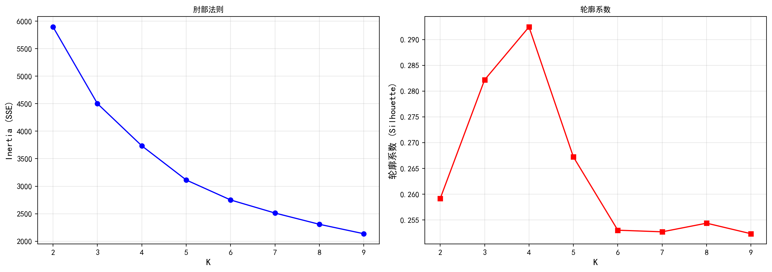 plt.show() # 显示图形(K=3时轮廓系数最高)