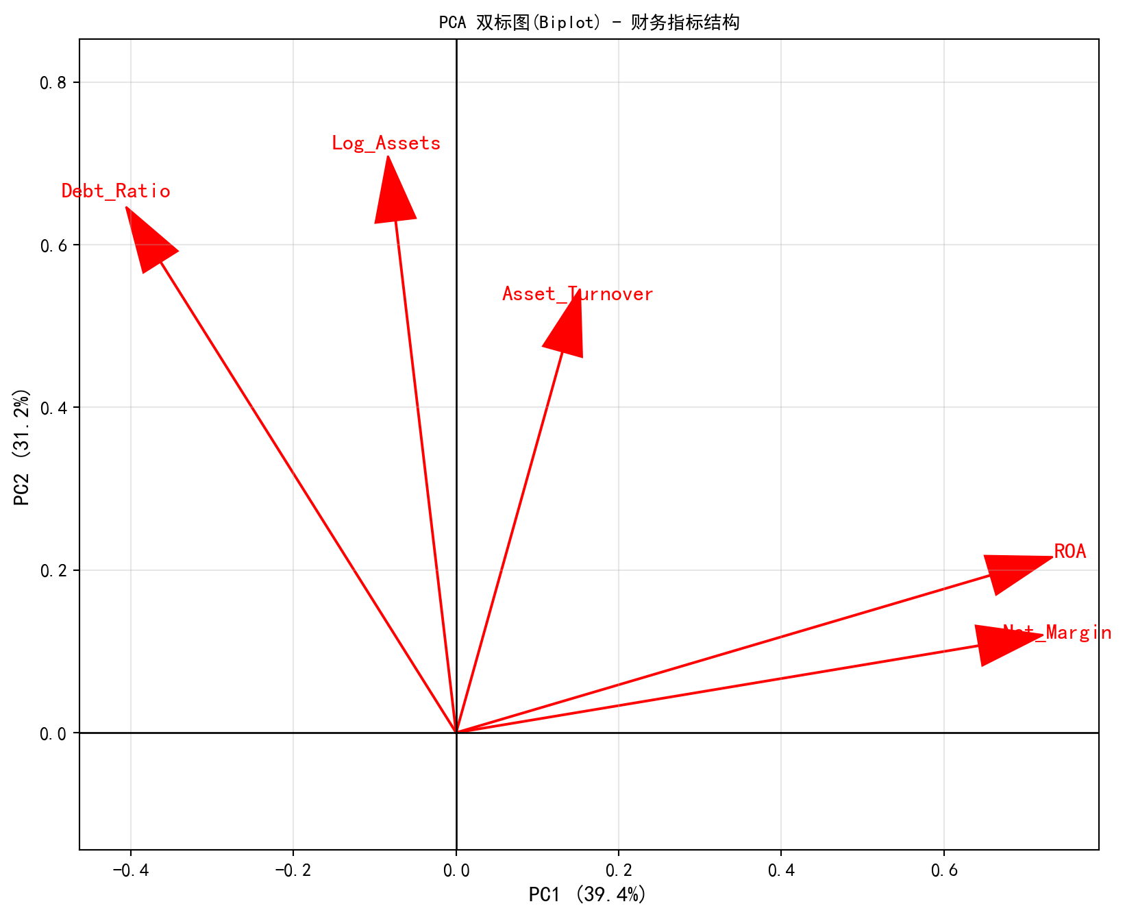 financial_features = ['Log_Assets', 'Debt_Ratio', 'Net_Margin', 'Asset_Turnover', 'ROA'] # 定义用于PCA的特征列表