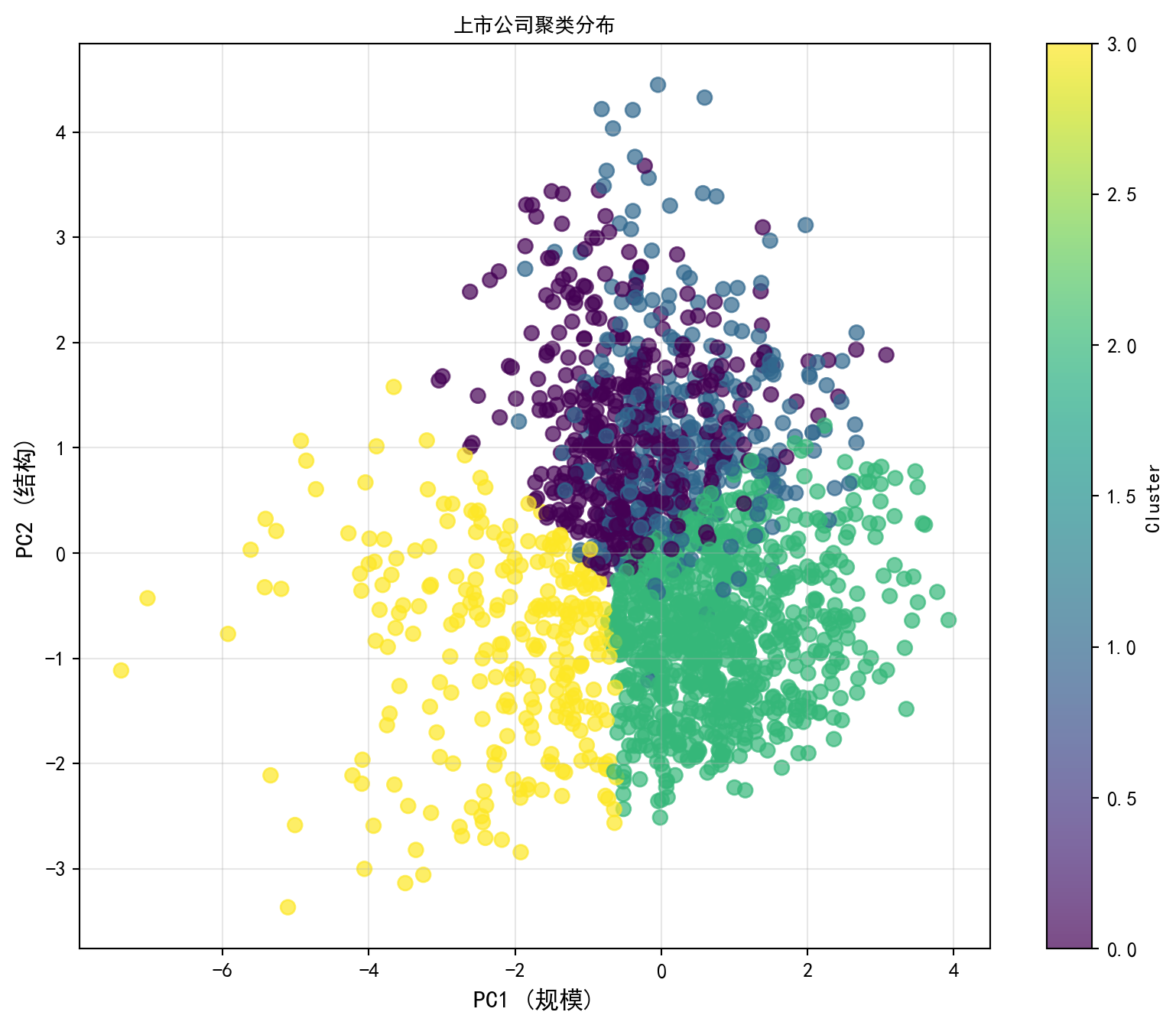 为了理解A股市场的内在结构,我们将对上市公司进行主成分分析。我们的目标是从众多的财务指标中提取出反映公司核心特征(如”规模”、“盈利能力”、“杠杆”)的主成分。
