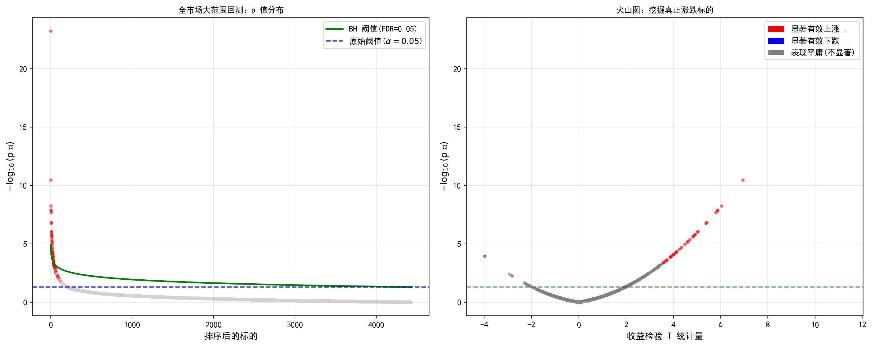 print(f'BH校正后(FDR=5%): {significant_count} 个策略显著') # 输出校正结果